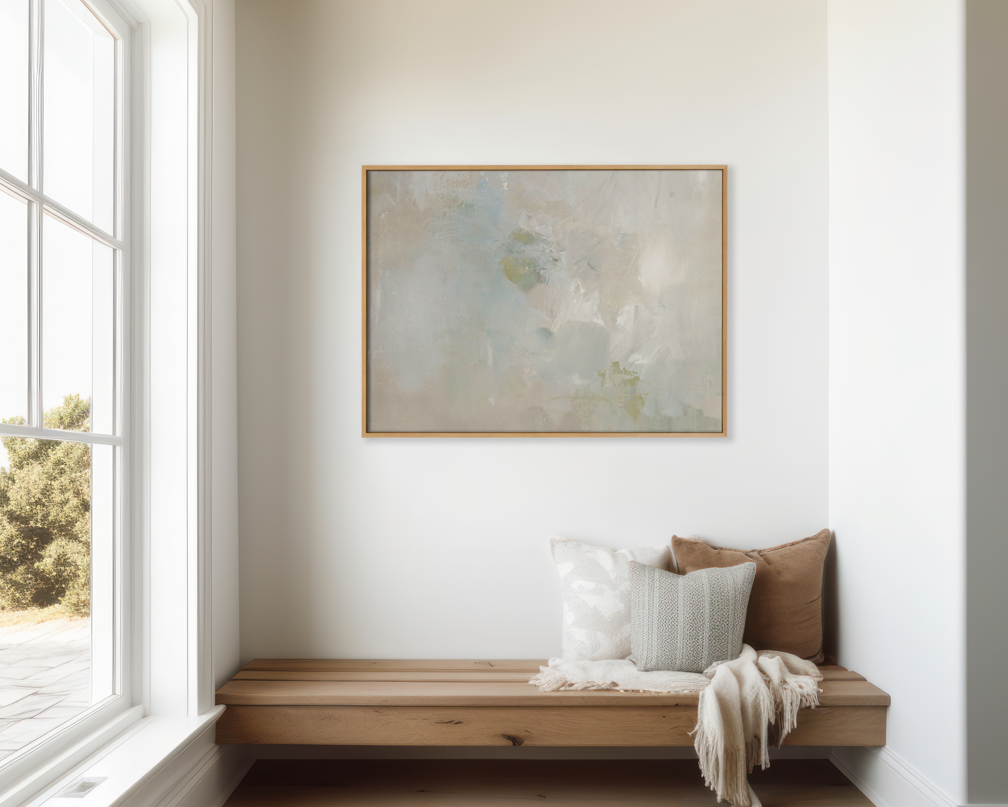 This original painting captures that fleeting moment when light gently filters through a room, softening everything it touches. It’s both grounding and uplifting; a balance that makes it incredibly versatile for modern, minimal, or collected interiors.
